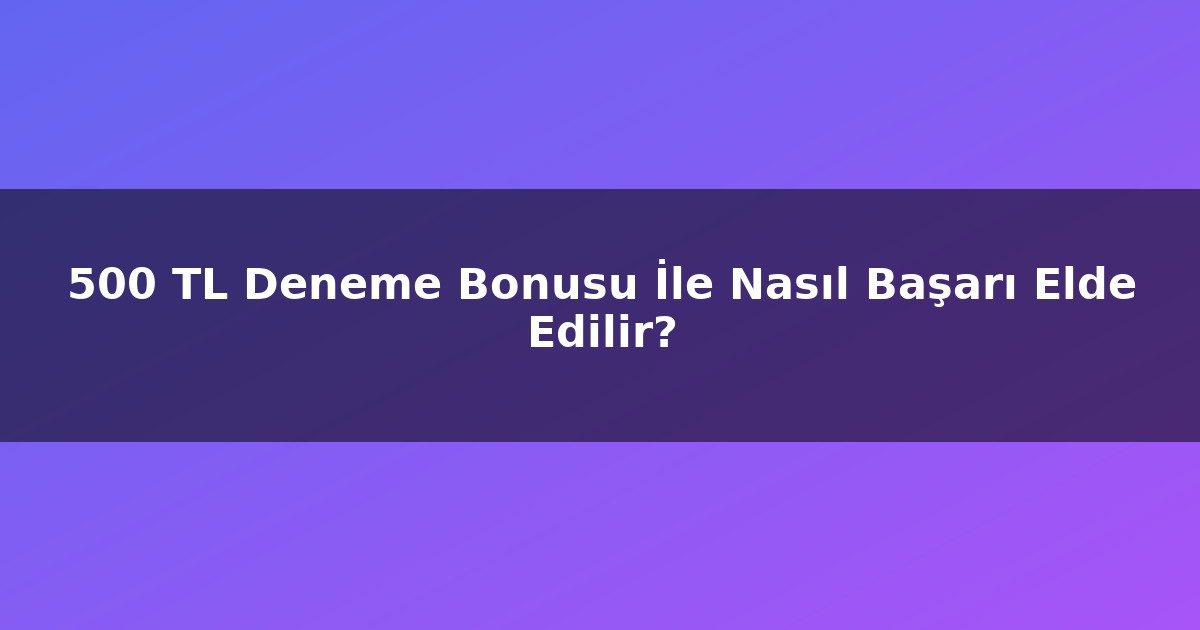500 TL Deneme Bonusu İle Nasıl Başarı Elde Edilir?